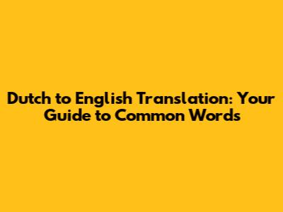 Common Dutch Words and Their English Translations
