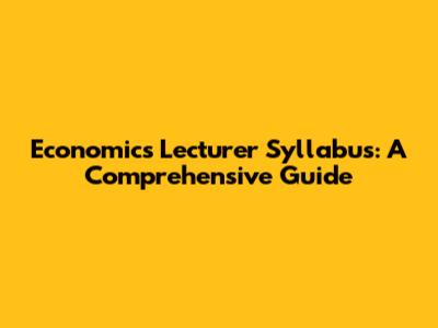 Economics Lecturer Syllabus: A Comprehensive Guide