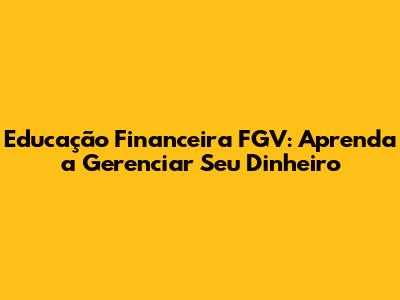 Educação Financeira FGV: Aprenda A Gerenciar Seu Dinheiro