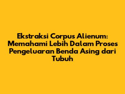 Ekstraksi corpus alienum adalah istilah medis yang merujuk pada proses pengeluaran benda asing atau corpus alienum dari dalam tubuh seseorang. Guys, bayangkan ada sesuatu yang seharusnya tidak ada di dalam tubuh kita, seperti duri, serpihan kaca, atau bahkan mainan kecil yang tidak sengaja tertelan. Nah, tindakan untuk mengeluarkannya itulah yang disebut dengan ekstraksi corpus alienum. Proses ini bisa bervariasi tergantung pada lokasi dan jenis benda asingnya, serta kondisi pasien. Dalam artikel ini, kita akan membahas secara mendalam mengenai apa itu ekstraksi corpus alienum, mengapa hal itu penting, bagaimana prosedur pelaksanaannya, serta hal-hal lain yang perlu kalian ketahui.