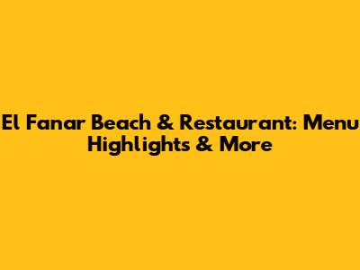 El Fanar Beach & Restaurant: Menu Highlights & More