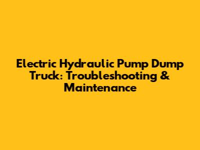 Electric Hydraulic Pump Dump Truck: Troubleshooting & Maintenance