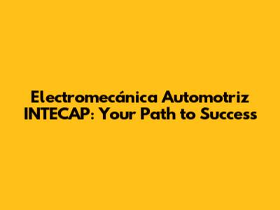Electromecánica Automotriz INTECAP: Your Path To Success
