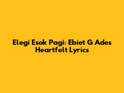 Hey guys, ever find yourself humming a tune and suddenly realize the lyrics just get you? That's Ebiet G Ade for so many of us. His song, "Elegi Esok Pagi," isn't just a song; it's an experience. Let's dive deep into what makes this song so special, focusing on those heart-touching lyrics that have resonated with generations.