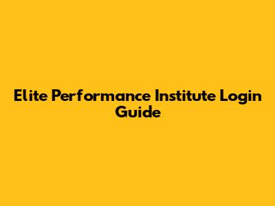 Elite Performance Institute Login Guide