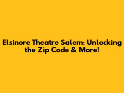 Elsinore Theatre Salem: Unlocking The Zip Code & More!