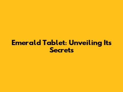 Emerald Tablet: Unveiling Its Secrets