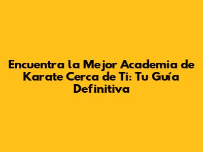Encuentra tu Academia de Karate Perfecta: ¡Empieza Hoy!