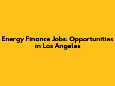 Energy Finance Jobs: Opportunities In Los Angeles