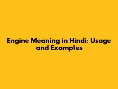 Engine Meaning In Hindi: Usage And Examples