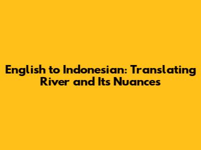 English To Indonesian: Translating River And Its Nuances