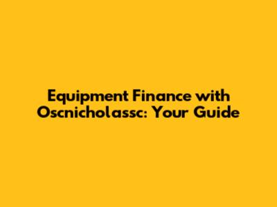 Equipment Finance With Oscnicholassc: Your Guide