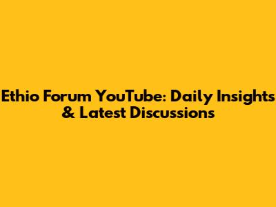 Ethio Forum YouTube: Daily Insights & Latest Discussions