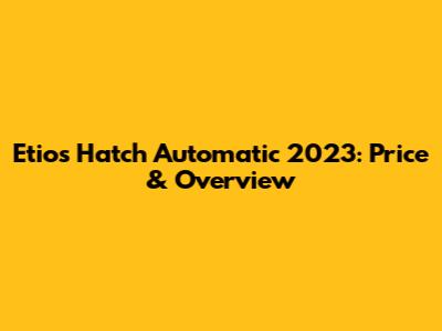Hey guys! Today, we're diving deep into the Etios Hatch Automatic 2023, focusing specifically on what you need to know about its price and overall value. If you're in the market for a reliable, automatic hatchback, the Etios Hatch might be on your radar. Let's break it down to see if it’s the right fit for you. The Etios Hatch Automatic 2023 is designed to offer a blend of practicality and convenience, making it an appealing option for city dwellers and anyone seeking an easy-to-drive vehicle. From its fuel efficiency to its comfortable interior, there's a lot to consider. Understanding the pricing structure is crucial because it directly impacts the overall value proposition. We'll explore the different trim levels and how the features vary, which will help you make an informed decision. Plus, we'll also touch on the long-term ownership costs, including maintenance and insurance, to give you a complete picture. Whether you're a first-time car buyer or looking to upgrade, this guide aims to provide all the essential information you need about the Etios Hatch Automatic 2023. So, buckle up and let’s get started!