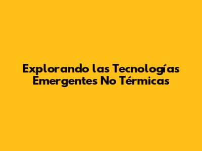 Explorando Las Tecnologías Emergentes No Térmicas