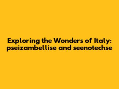 Exploring The Wonders Of Italy: Pseizambellise And Seenotechse