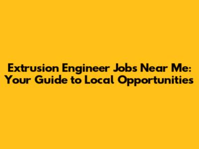 Extrusion Engineer Jobs: Find Local Opportunities Now!