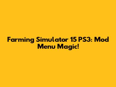 Hey guys! Ever wondered how to inject a little extra fun into your Farming Simulator 15 experience on the PS3? Well, you've come to the right place! We're diving deep into the world of mod menus for FS15 on the PlayStation 3. Let's face it, the base game is awesome, but who wouldn't want to supercharge their farming adventures with some cool tweaks, vehicles, or maybe even some downright crazy additions? A mod menu opens up a whole new realm of possibilities, letting you customize your gameplay in ways you never thought possible.