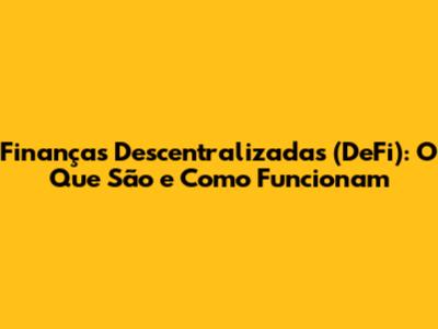 O Que São Finanças Descentralizadas (DeFi)?