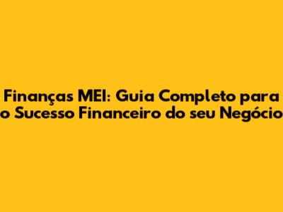 Finanças MEI: Guia Completo Para O Sucesso Financeiro Do Seu Negócio