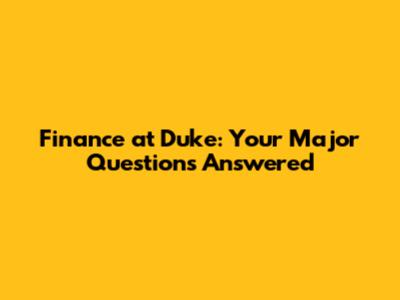 Finance At Duke: Your Major Questions Answered