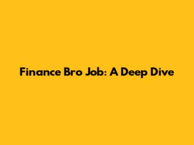 Finance Bro Job: A Deep Dive