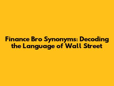 Finance Bro Synonyms: Decoding The Language Of Wall Street