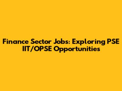 Finance Jobs: PSE IIT/OPSE Opportunities