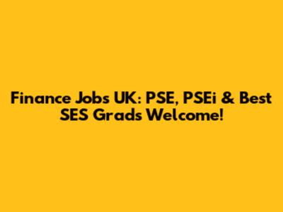 Finance Jobs UK: PSE, PSEi & Best SES Grads Welcome!