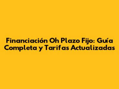 Financiera Oh Plazo Fijo: Guía Completa Y Tarifas Actualizadas