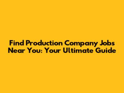 Find Production Company Jobs Near You