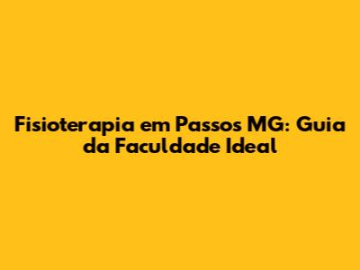Embora eu não possa fornecer uma lista exata de todas as faculdades em Passos MG (já que isso pode mudar com o tempo), você pode pesquisar nas seguintes instituições e verificar se elas oferecem o curso de Fisioterapia: