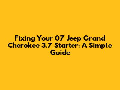 Fixing Your 07 Jeep Grand Cherokee 3.7 Starter: A Simple Guide