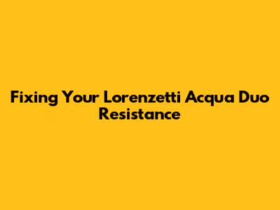 Understanding the Lorenzetti Acqua Duo Resistance