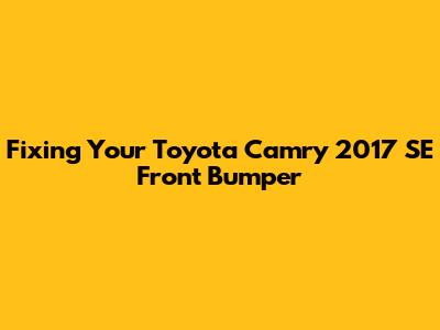 Fixing Your Toyota Camry 2017 SE Front Bumper