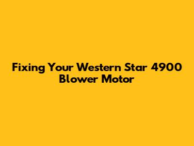 Understanding the Western Star 4900 Blower Motor