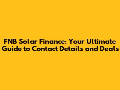 FNB Solar Finance: Get The Best Contact Info & Deals