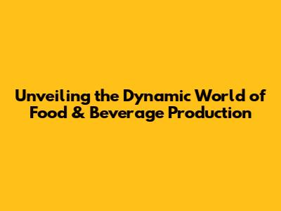 Unveiling the Dynamic World of Food & Beverage Production