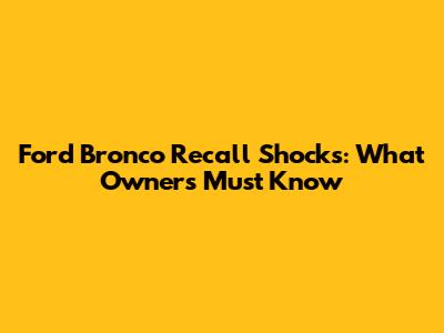 Ford Bronco Recall Shocks: What Owners Must Know