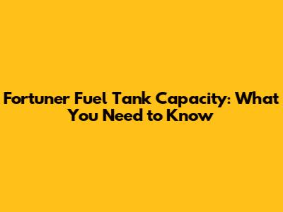 Fortuner Fuel Tank Capacity: What You Need To Know
