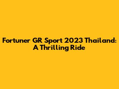 Fortuner GR Sport 2023 Thailand: A Thrilling Ride