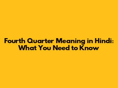 Fourth Quarter Meaning In Hindi: What You Need To Know