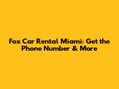 Fox Car Rental Miami: Get The Phone Number & More