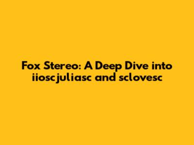 Fox Stereo: A Deep Dive Into Iioscjuliasc And Sclovesc