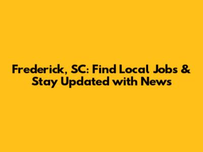 Frederick, SC: Find Local Jobs & Stay Updated With News