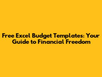 Free Excel Budget Templates: Your Guide To Financial Freedom