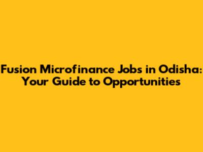 Fusion Microfinance Jobs In Odisha: Your Guide To Opportunities