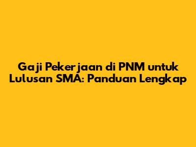 Gaji pekerjaan di PNM untuk lulusan SMA bervariasi tergantung pada posisi dan pengalaman. PNM menawarkan beberapa posisi yang terbuka bagi lulusan SMA, dengan rentang gaji yang kompetitif. Beberapa posisi yang umum ditemui adalah: