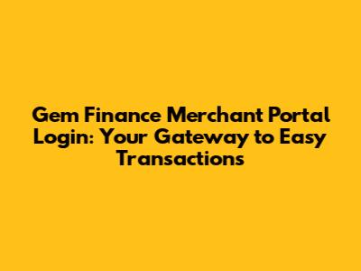 Gem Finance Merchant Portal Login