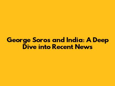 George Soros India: Latest News And Developments